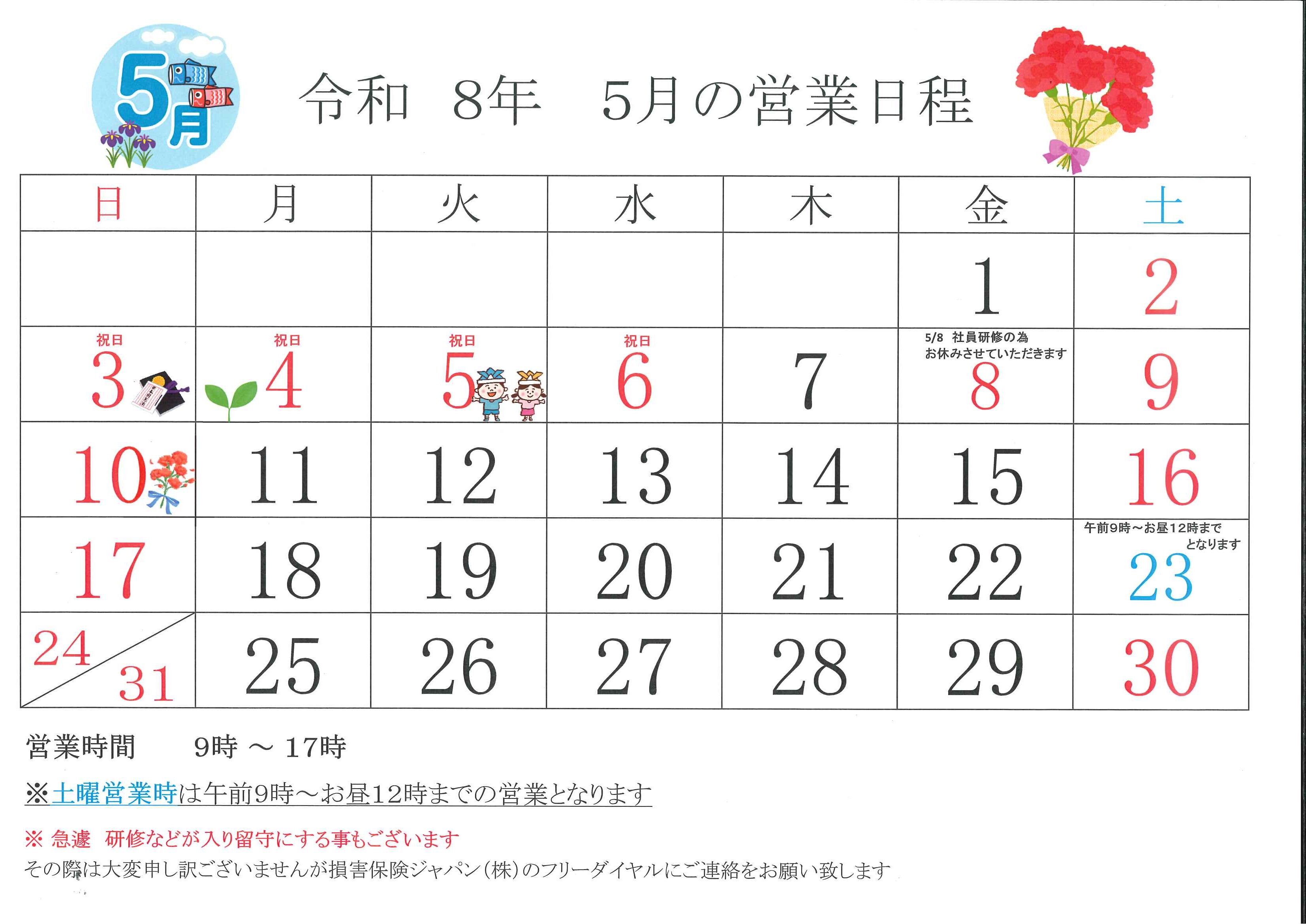 5月の営業日程